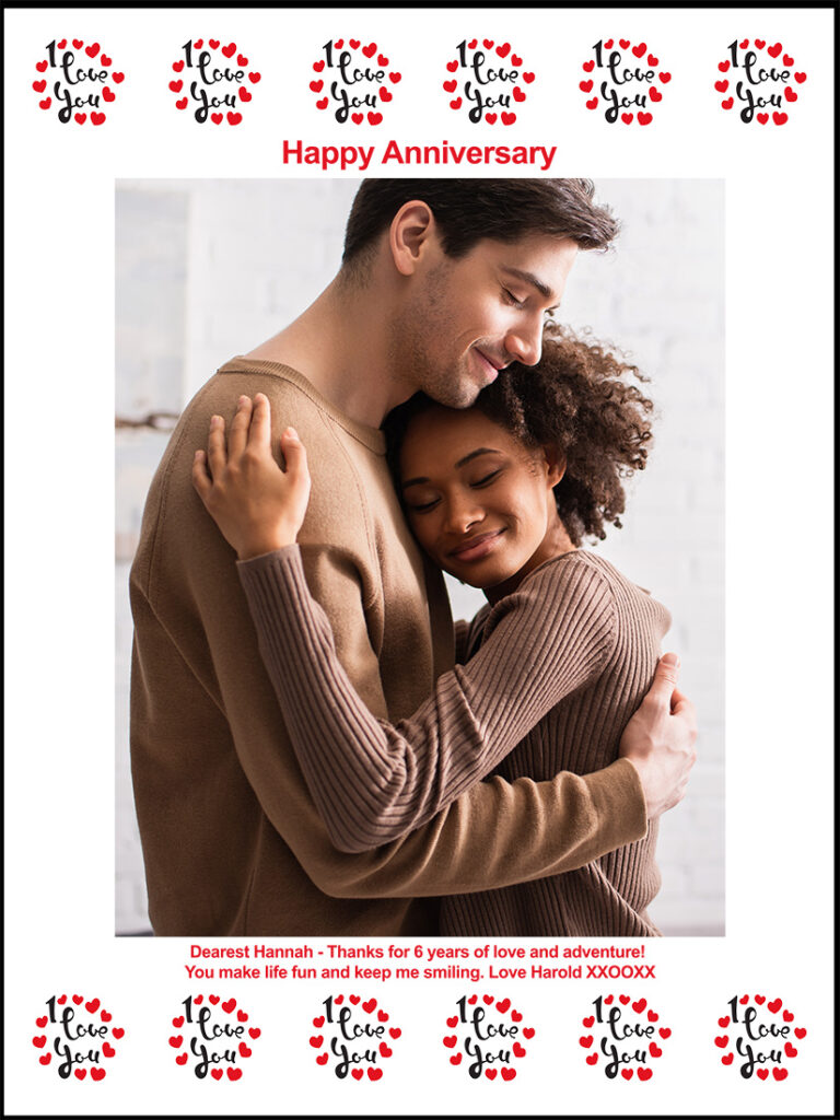 Configure your candy calendar to fit your needs. You can pick from 12 or 24 chocolates. Choose the layout that best fits your image – horizontal or vertical. All photos are laser printed on high quality photo paper and can be cut out for framing. The chocolate treats are arranged around the outside of the image